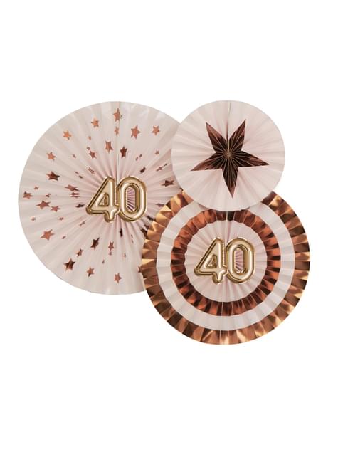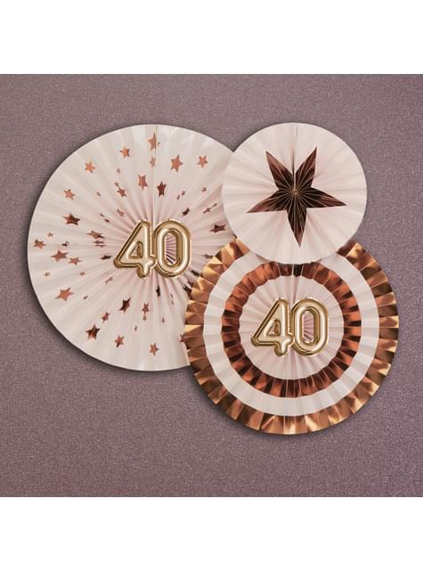3 sekalaista, koristeellista "40" viuhkaa - Glitz & Glamour Pink & Gold