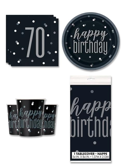 70. syntymäpäiväjuhlakoristeet 8 hengelle - Black & Silver Glitz