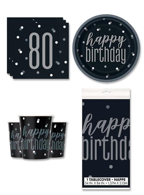 80. syntymäpäiväjuhlakoristeet 8 hengelle - Black & Silver Glitz