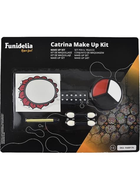 Sisältää: Meikkipaletti, jossa 3 väriä, musta kynä, applikaattorit ja tarrat