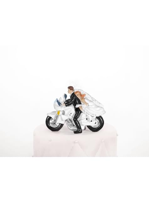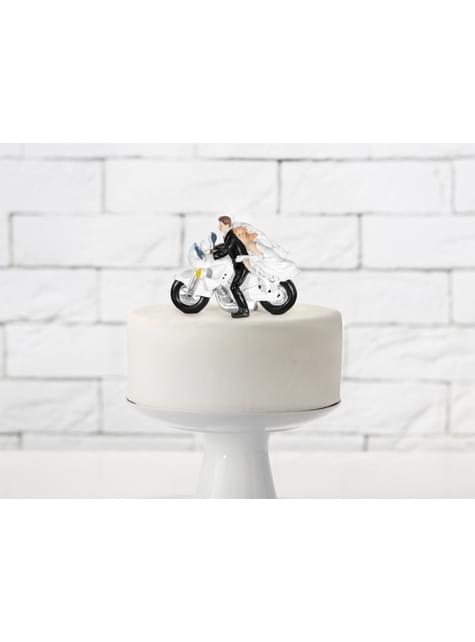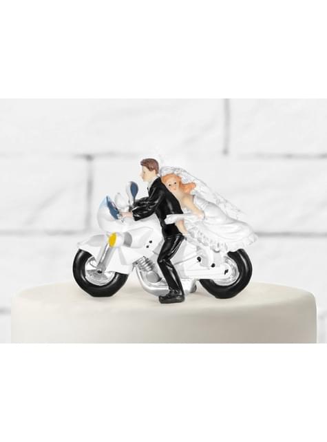 Hääkakkufiguriini sulhanen ja morsian moottoripyörällä