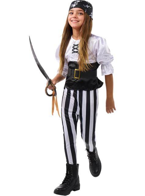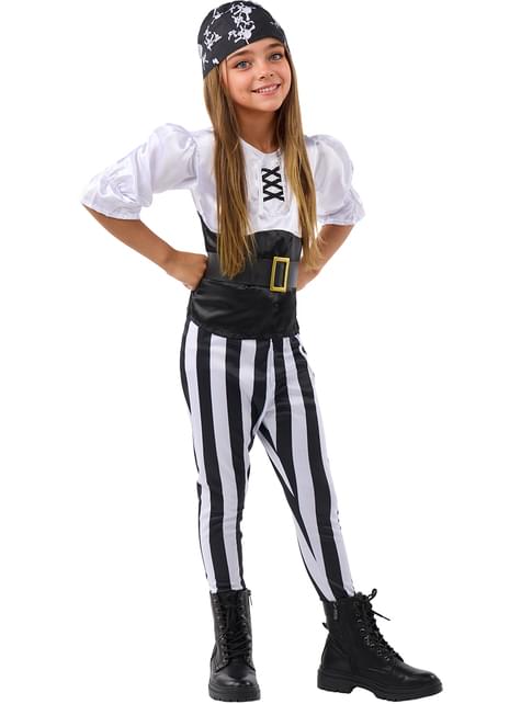 Raidallinen Merirosvopuku Tytöille - Mustavalkokokoelma